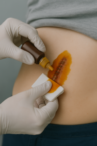 Una vez retirado el apósito y el material de cierre como suturas o grapas, la cura puede hacer el propio paciente teniendo las siguientes consideraciones: