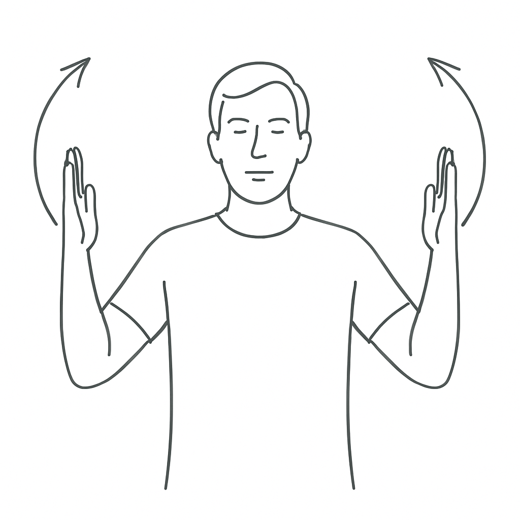 - Ejecución: Siéntate o colócate de pie con los brazos a los costados del cuerpo, palmas hacia adelante y pulgares apuntando al techo. Levanta los brazos y realiza círculos con ellos. Vuelve a la posición inicial.