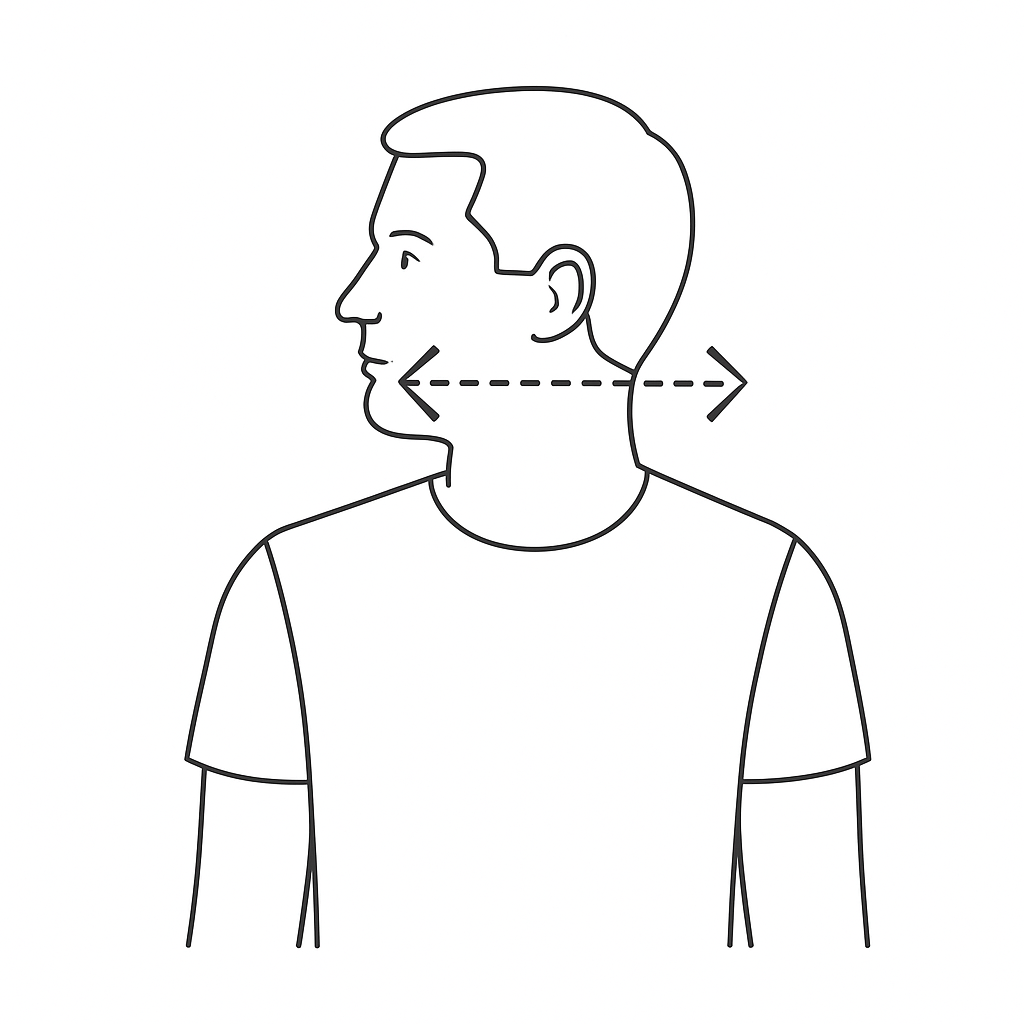 - Ejecución: Lleva el mentón hacia atrás, como si intentaras formar una «papada», manteniendo la mirada al frente.