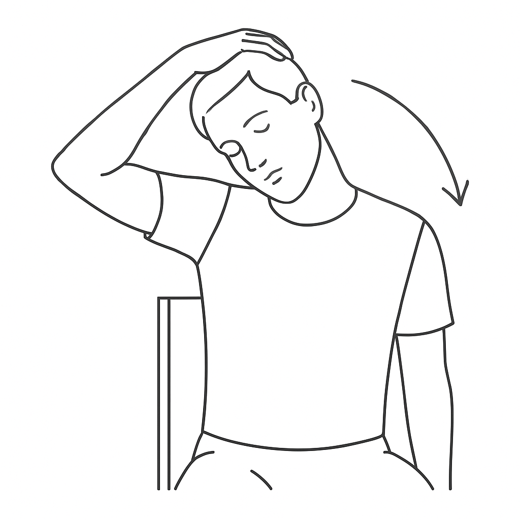 - Ejecución: Inclina la cabeza hacia un lado, intentando acercar la oreja al hombro sin levantar este último. Repite hacia el otro lado.