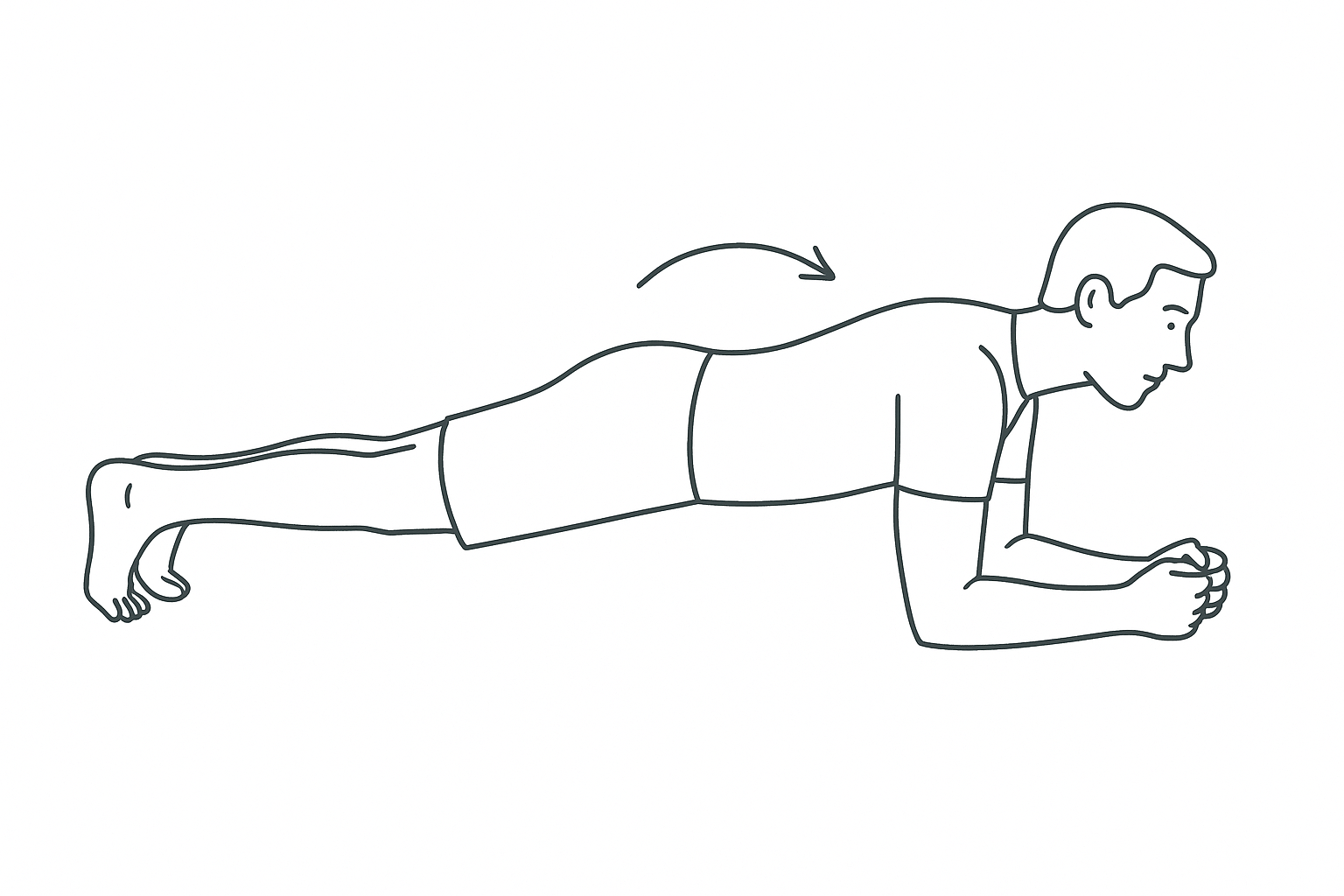 - Boca abajo, apoya antebrazos y puntas de pie, mantén cuerpo recto sin hundir zona lumbar.