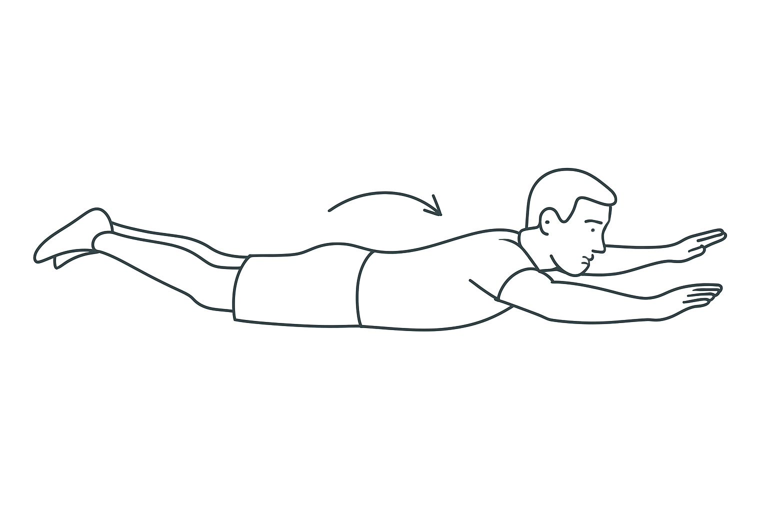 - Tumbado boca abajo, levanta simultáneamente brazos y piernas unos centímetros, mantén 2 s y desciende controlado.
