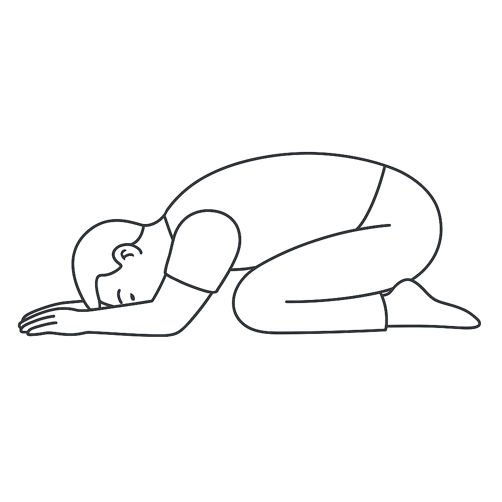 - Se realiza arrodillándose en el suelo y luego inclinándose hacia adelante, apoyando la frente en el suelo o en un cojín